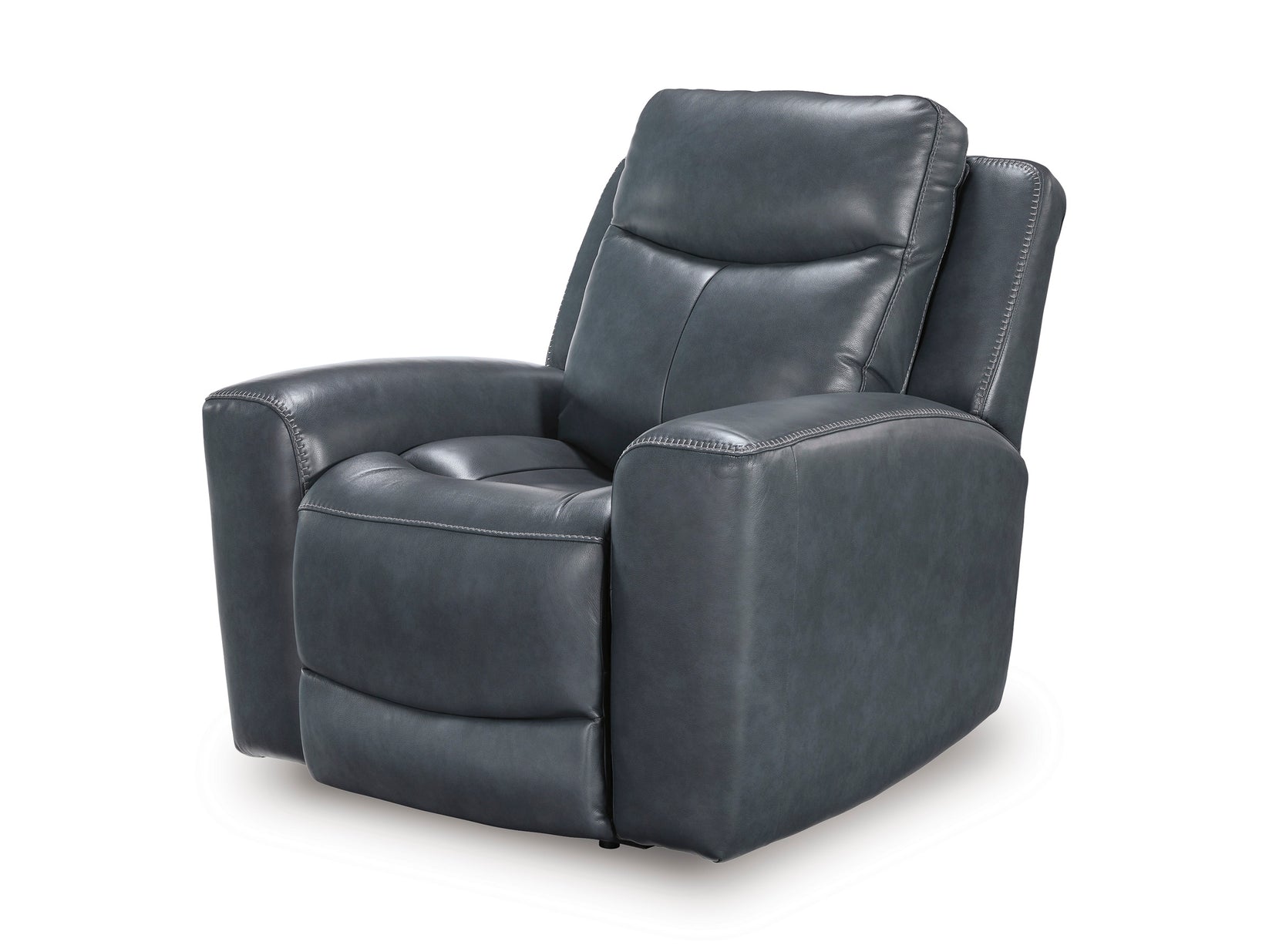 Prepare to be moved. This set combines sleek modern design with all the soothing features you've been dreaming of. Wrapped in blue-hued leather and faux leather for affordable luxury, this highly contemporary piece with cozy scoop seating suits your relaxed vibe. Infinite reclining and headrest positions are yours at the touch of a button. It's the perfect choice for anyone who wants their comfort with a side of style.