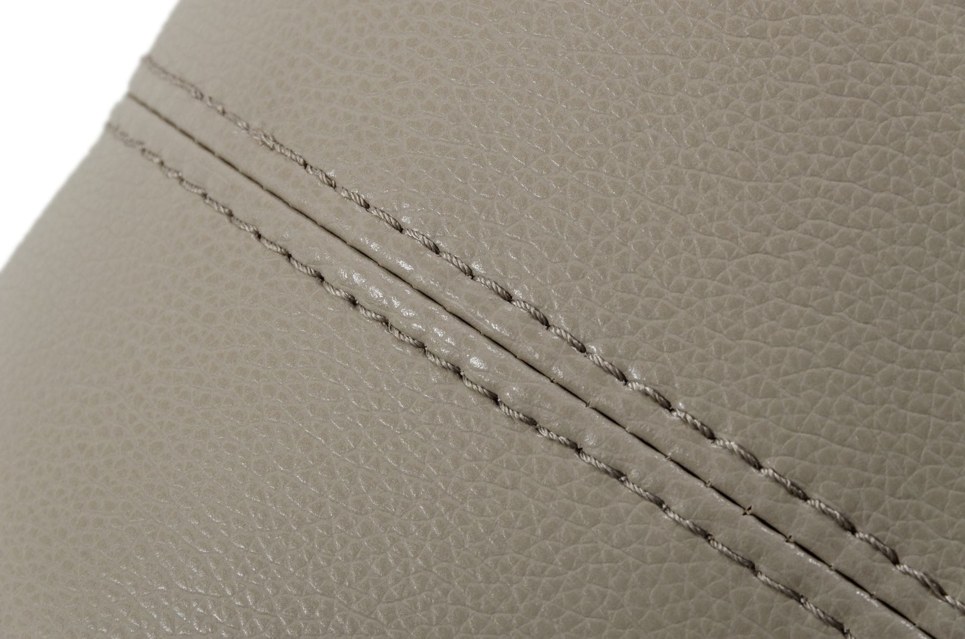 The Versa sectional is the right amount of elegance and comfort. With a right-facing recliner, left-facing chaise, and adjustable headrests this upholstered Light Taupe Eco Leather sectional is perfect for the whole family to relax in style. The rounded armrests are a nice touch as well.