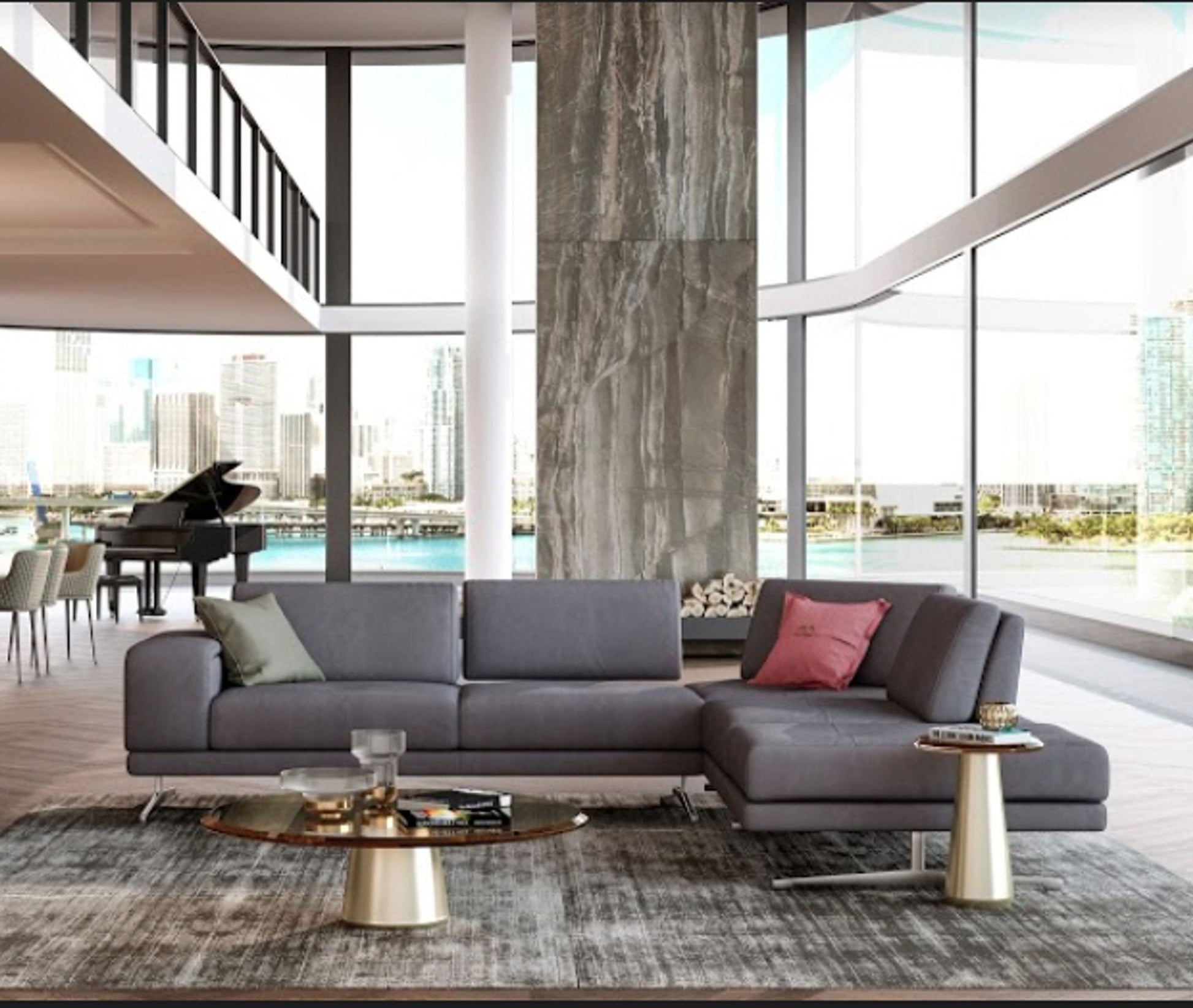 The Mood Sectional is a beautiful Italian made marvel. Coronelli Collezioni continues to bring us exquisite pieces and the Mood is no exception. The high grade nubuck upholstery looks stunning in the maya blue coloring while stainless steel legs offer contemporary necessities. MOveable backrests make this piece as functional as it is stylish. Pair with a patterned rug and stainless steel coffee table.