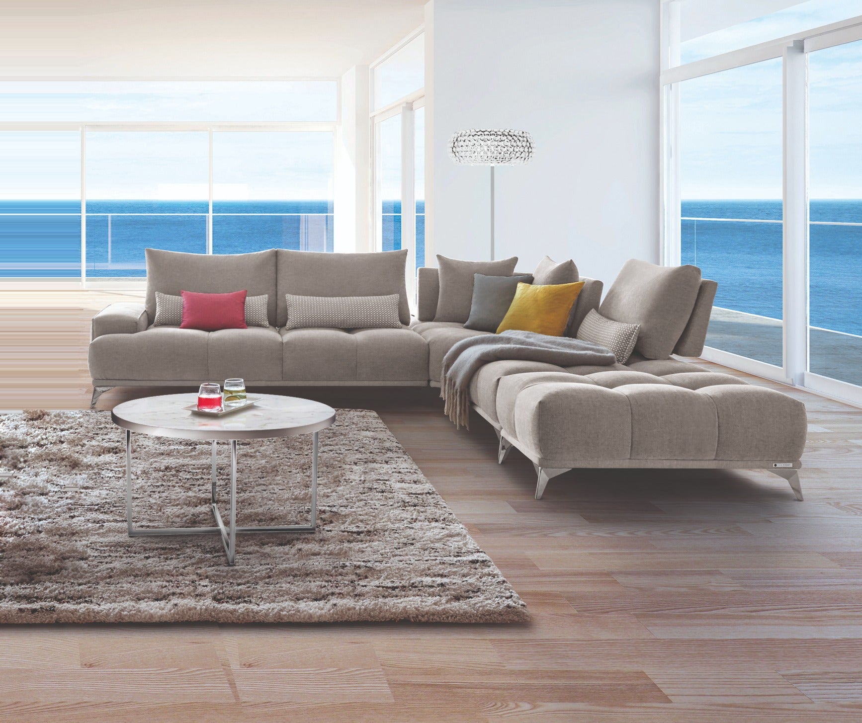 The Loft Sectional is a stylish piece that offers style and comfort with the added bonus of being expertly Made in Italy. Biscuit tufting finishes the upholstery of the grey fabric. Three Lumbar pillows, similarly upholstered provide extra comfort along with the adjustable backrests. These features all collide to providing for your essential needs while also showing off your amazing sense of style.
