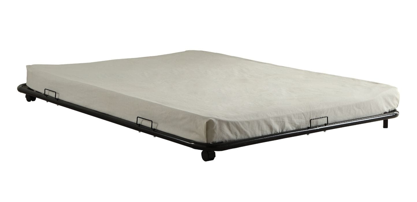 The Cailyn roll-out trundle unit features superior quality metal for durability and provides plenty of support and keeps mattress in place. Designed to fit under Cailyn's Collection Beds. Choose from black, blue, silver or white finish such variety of colors makes it compatible with all types of decor settings.