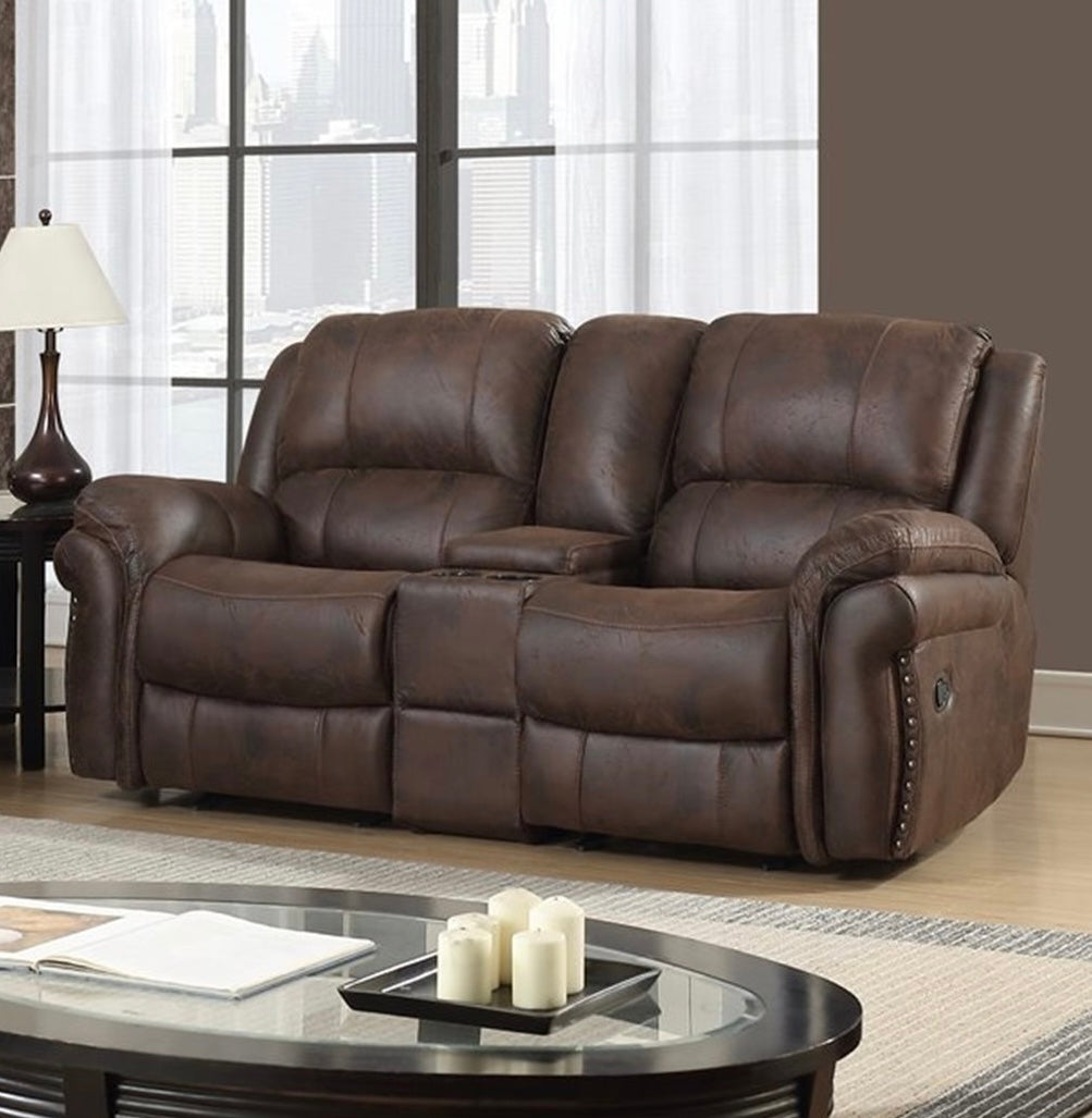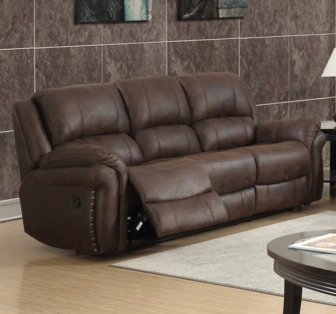 Chocolate Manual Motion Reclining Sofa and Loveseat with nail head