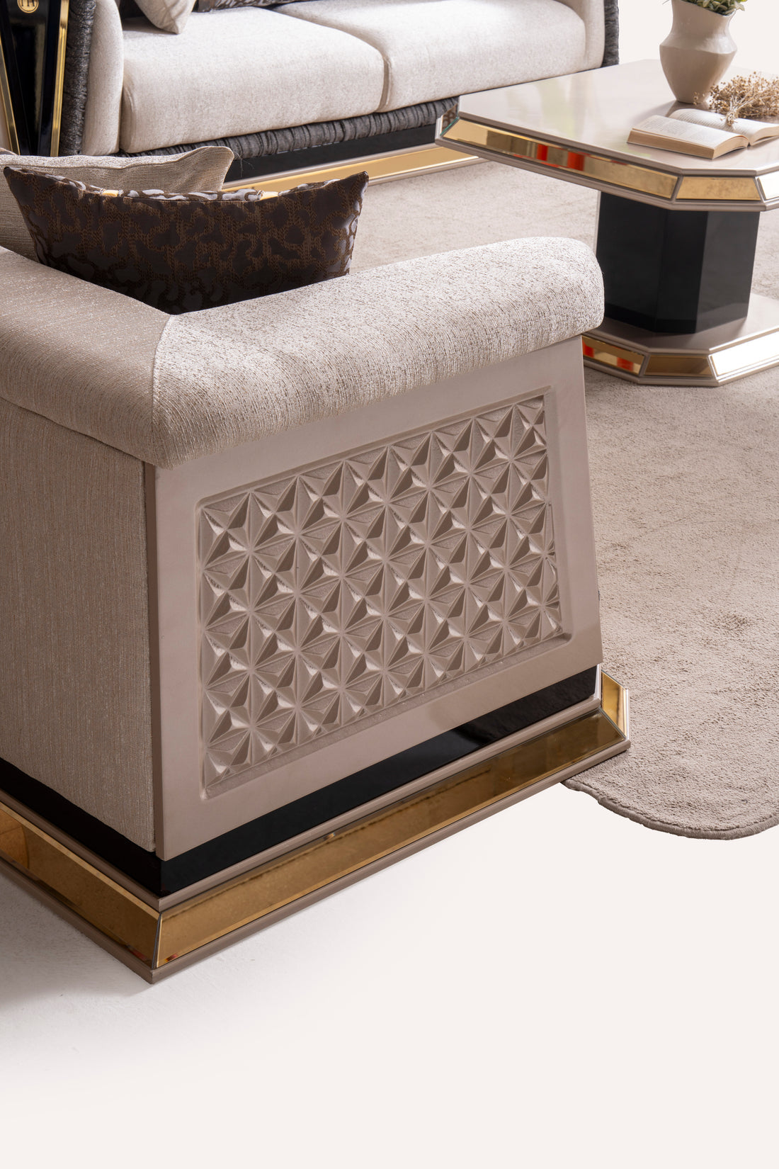 Elevate your living space with the Diamond Collection, a luxury 3-piece set that seamlessly blends contemporary design with timeless sophistication. Featuring premium upholstery, striking geometric detailing, and gleaming gold-tone accents, this collection delivers the plush comfort and refined aesthetic that discerning homeowners demand. Each piece showcases meticulous craftsmanship and a bold silhouette that transforms any room into a statement of modern elegance. Ideal for those who refuse to compromise on style or comfort.