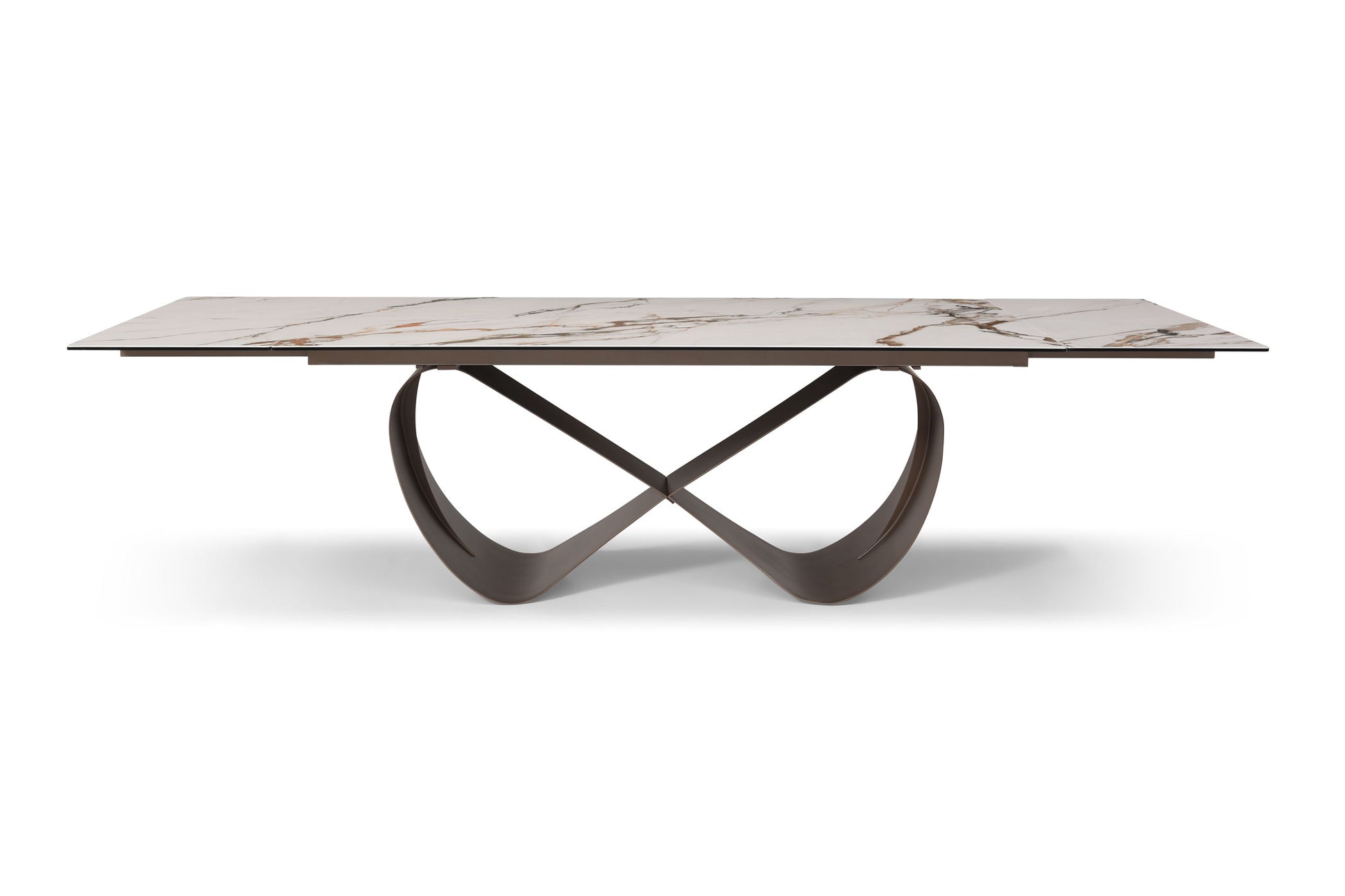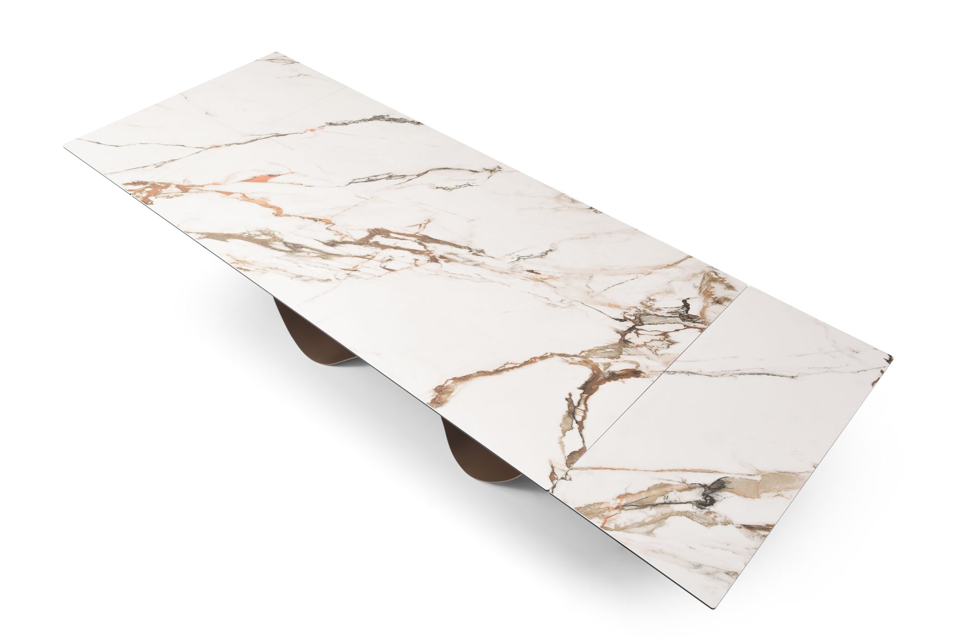 Stunning dining table adorned with a ceramic surface that perfectly emulates the elegant beauty of marble, bringing a touch of refined sophistication to your dining space.