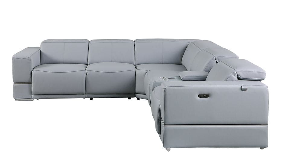 Franco Power Reclining Italian Leather Sectional 6pcs Light Blue