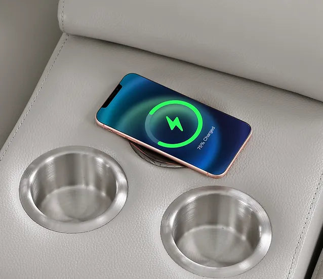 Franco Power Reclining Italian Leather Sectional 7pcs Light Grey
