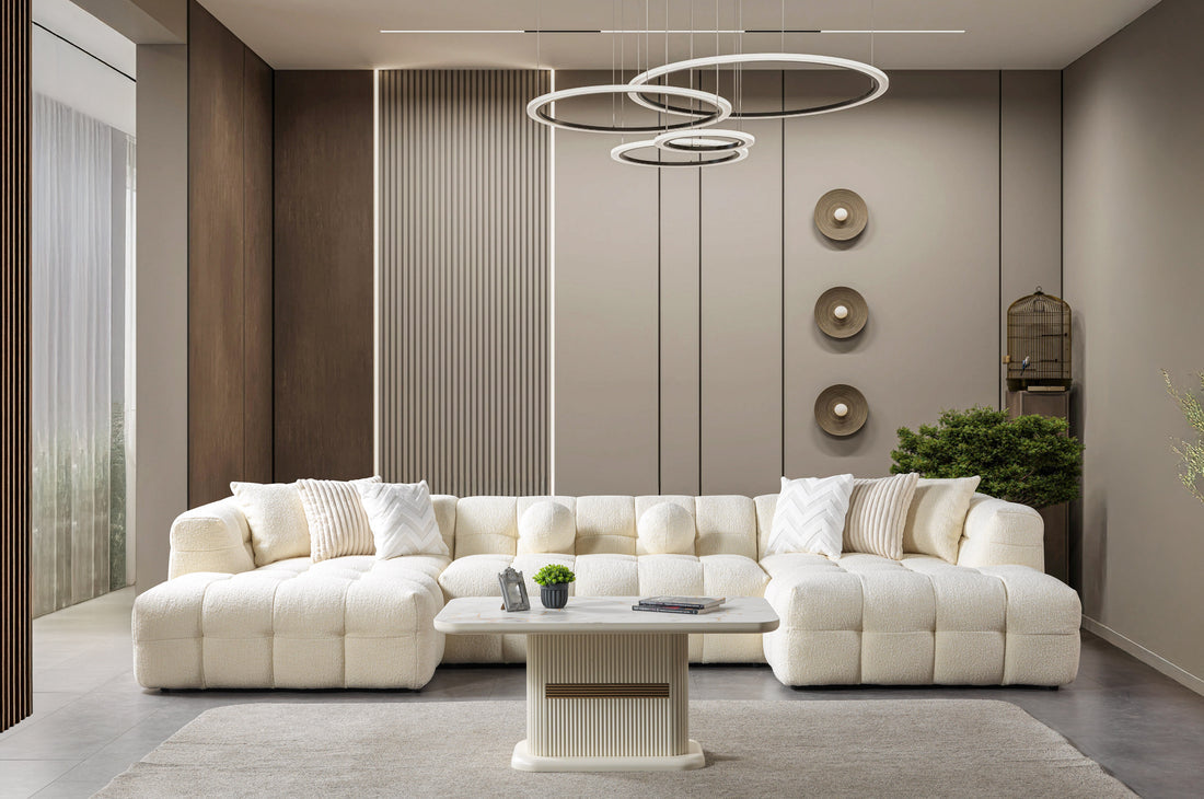 Ivy Ivory Boucle Double Chaise 146" Sectional