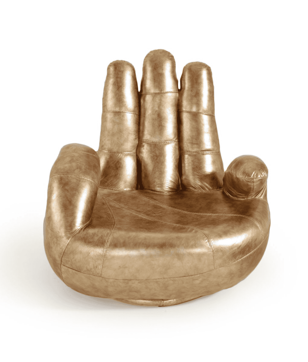 The Sosia Accent Chair is the perfect modern accent piece for your bold home. The gold Italian leather upholstery covers the exaggerated silhouette of this hand shaped chair. Adding a swivel base means this item is full of features. Perfect for a dramatic living space, pair with a fur rug and white leather sofa to complete an exceptional space.