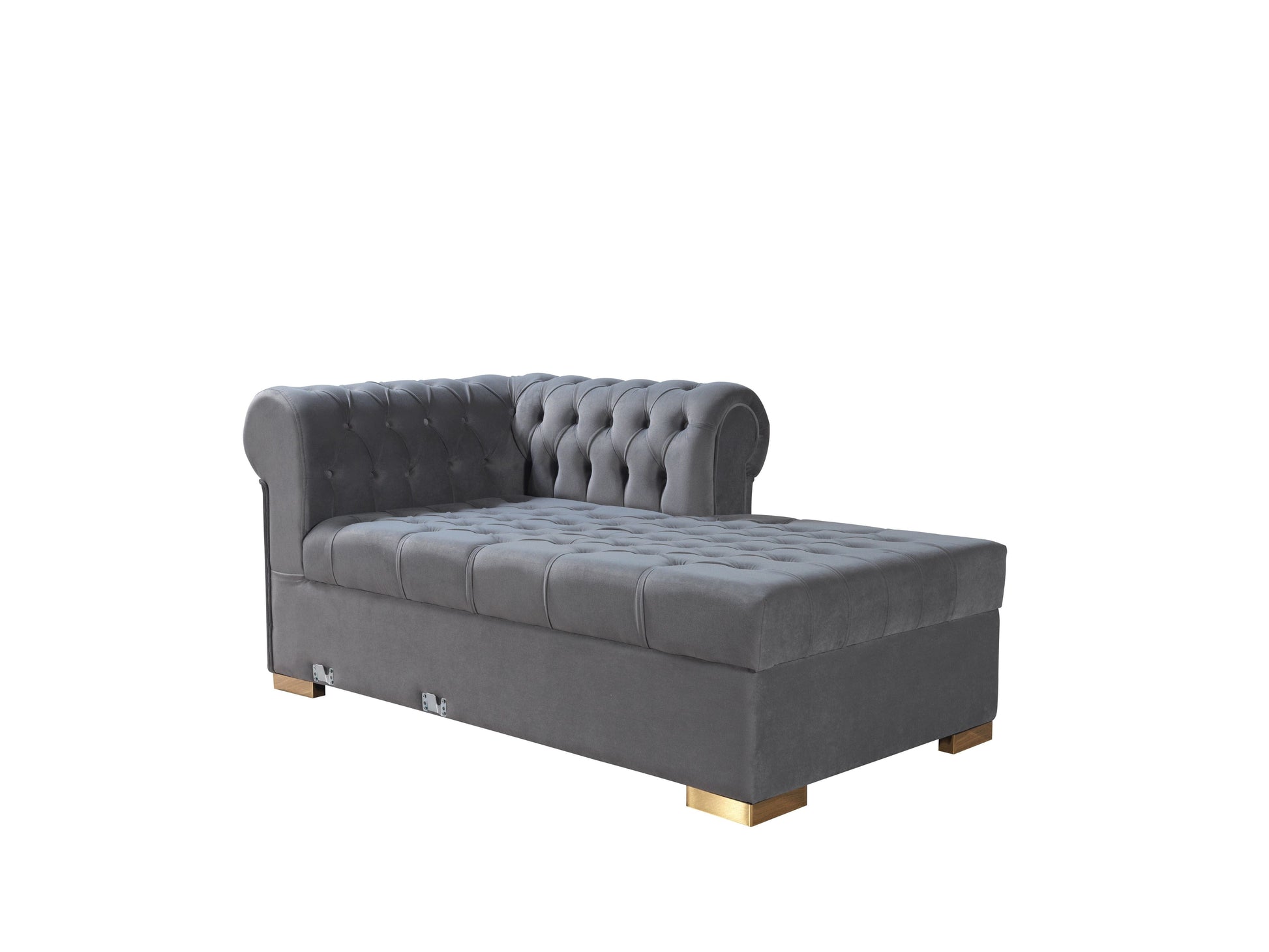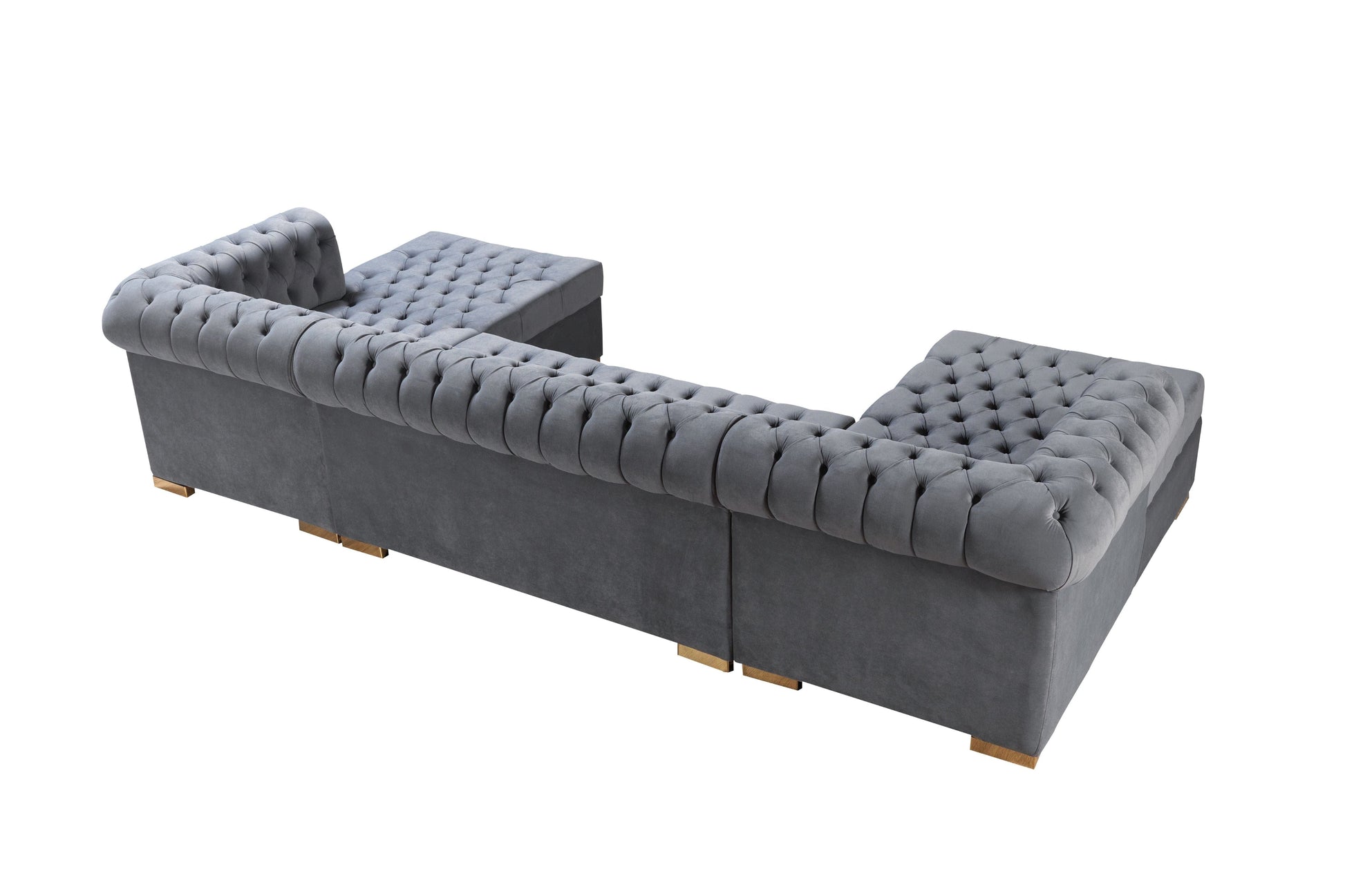 Lauren is our most charming, luxury double chaise sectional boasting a fusion of contemporary and classic style. This sectional comes with complete sets of gold legs and eight designer pillows. - Material: Velvet