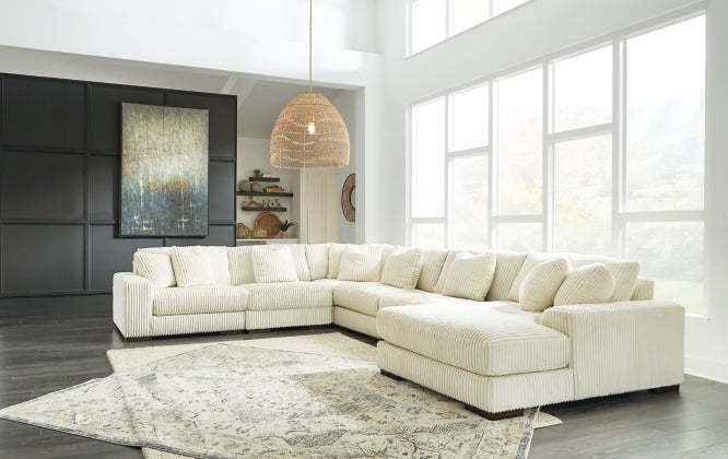 Plush and posh. Showcase your eye for on-trend texture with the statement-making cord upholstery of this sectional with chaise. Its stunningly soft fabric entices in an ivory hue, complementing contemporary color palettes. Sink into the cushions and plan to stay a while—this cozy living room centerpiece highlights your high-end approach to comfort and style.