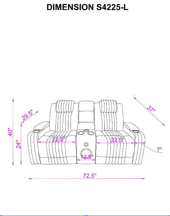 Discover the S4225 Lita collection in sleek Black, designed for comfort and modern living. The sofa features a power recliner and headrest, a convenient dropdown table with reading light, LED lighting, and storage arms for practical use. The loveseat offers power recline and headrest, integrated speakers, LED lighting, and storage arms to elevate your relaxation experience. The recliner delivers power recline and headrest alongside subtle LED lighting, creating a perfect spot to unwind. Upgrade your home with these stylish, technology-rich pieces that blend comfort and innovation seamlessly.
