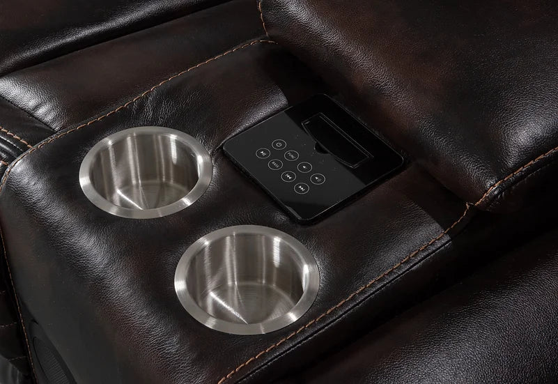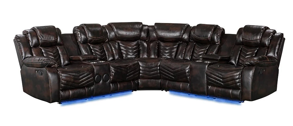 Lucky Reclining Sectional, LED, Bluetooth, Speakers Brown