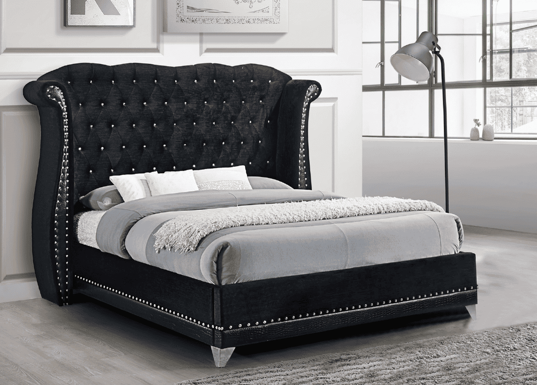 Description: Black Velvet with Diamonds. Crocodile vinyl across bottom with metal legs.