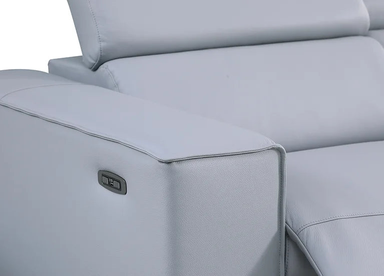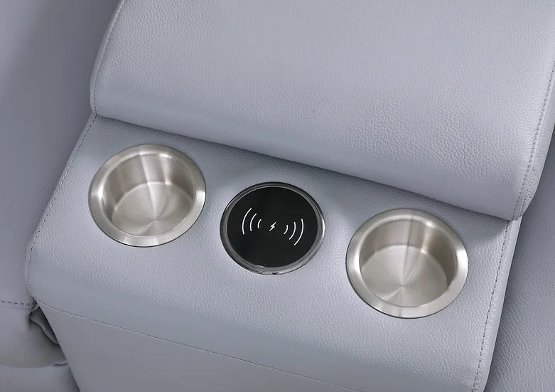 Introducing the exquisite Picasso Sectional in a refreshing Light Blue hue, a testament to modern Contemporary Style. Crafted with meticulous attention to detail, this sectional features a harmonious blend of luxury and functionality. The Leather Match upholstery offers a perfect balance between opulence and practicality. Equipped with two Power Recliners and two Power Headrests, this sectional ensures personalized comfort at your fingertips. The thoughtfully designed Console comes with convenient Cupholders, allowing you to relish your favorite beverages while lounging. To keep you connected, a built-in Wireless Charger ensures your devices stay powered without interruption. Elevate your living space with the Picasso Sectional, where sophistication and innovation converge seamlessly.