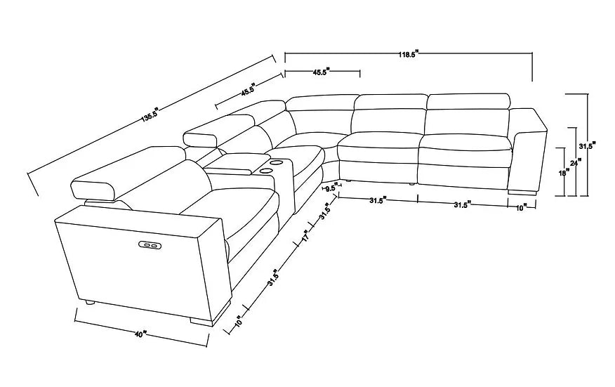 6pcs Power Reclining Sectional with 2 Power headrests and Wireless Charger