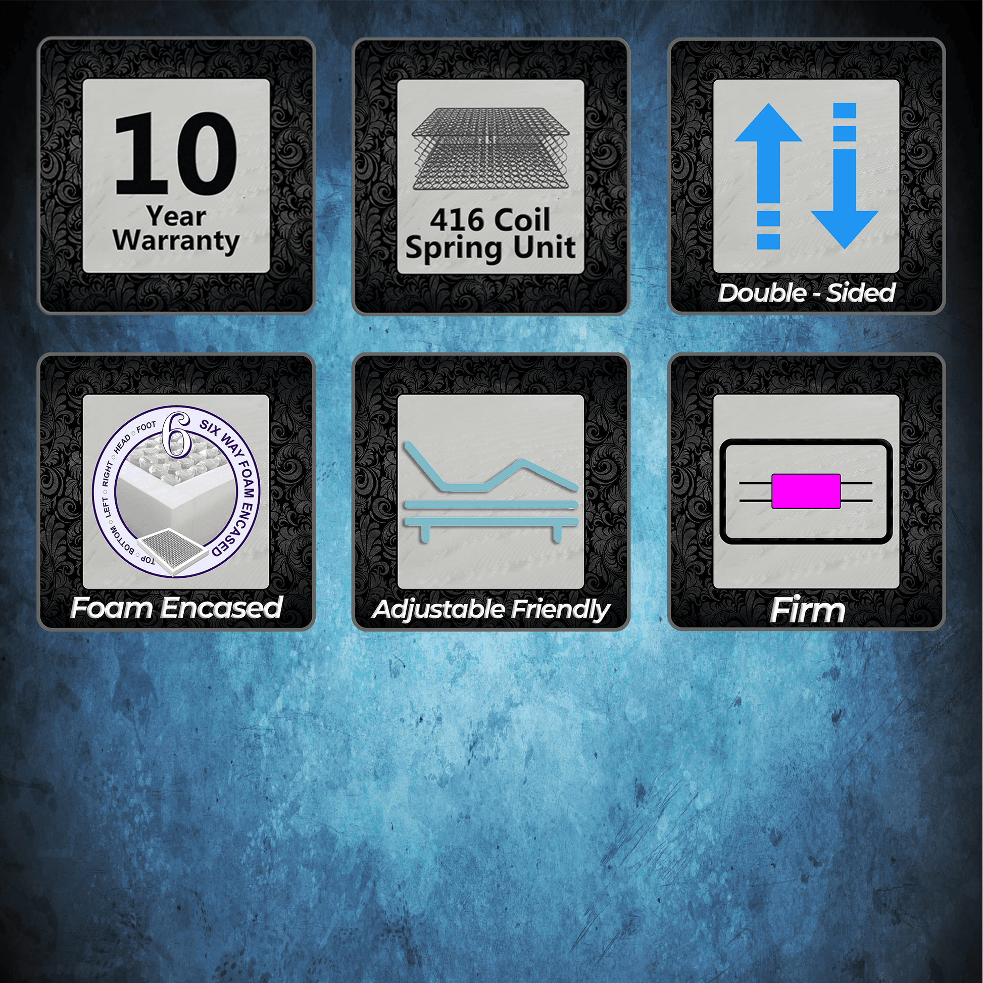 The Park Avenue Firm is a highly durable mattress bolstering the legendary 416 high tempered steel spring. The PK1 is also foam encased featuring full edge to edge support while increasing the longevity by being double-sided. It is a rare find to be double sided, while foam encased.