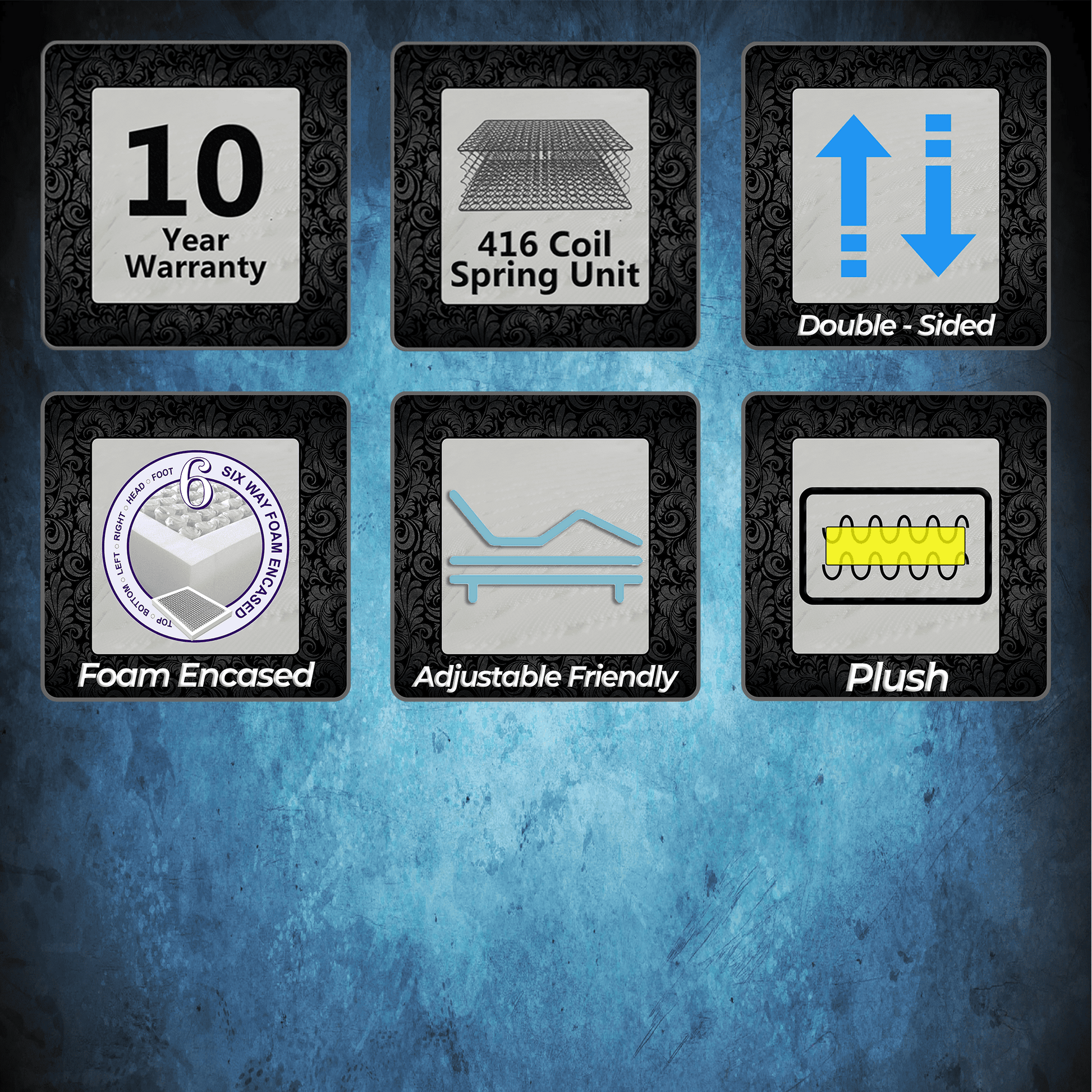 The Park Avenue Plush is a highly durable mattress bolstering the legendary 416 high tempered steel spring. The PK2 is also foam encased featuring full edge to edge support while increasing the longevity by being double-sided. It is a rare find to be double sided, while foam encased.