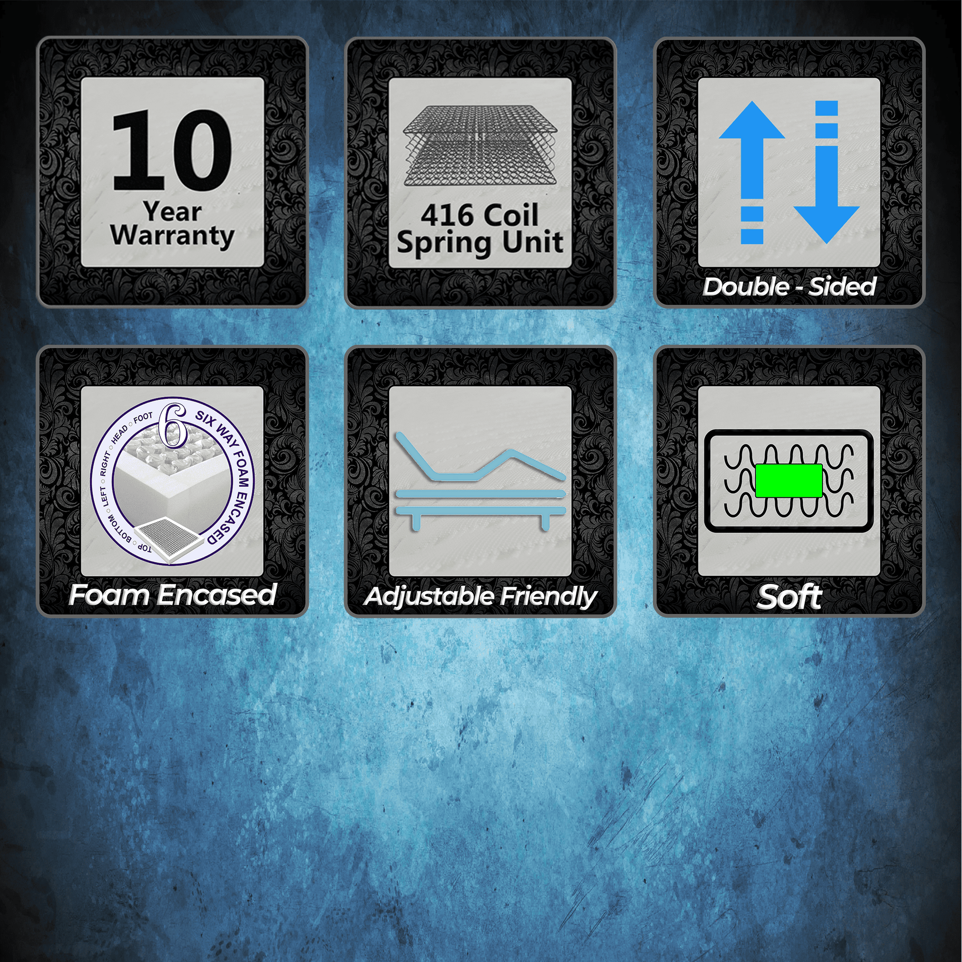 The Park Avenue Pillowtop is a highly durable mattress bolstering the legendary 416 high tempered steel spring. The PK3 is also foam encased featuring full edge to edge support while increasing the longevity by being double-sided. It is a rare find double sided, while foam encased and having a thickness over 15in!