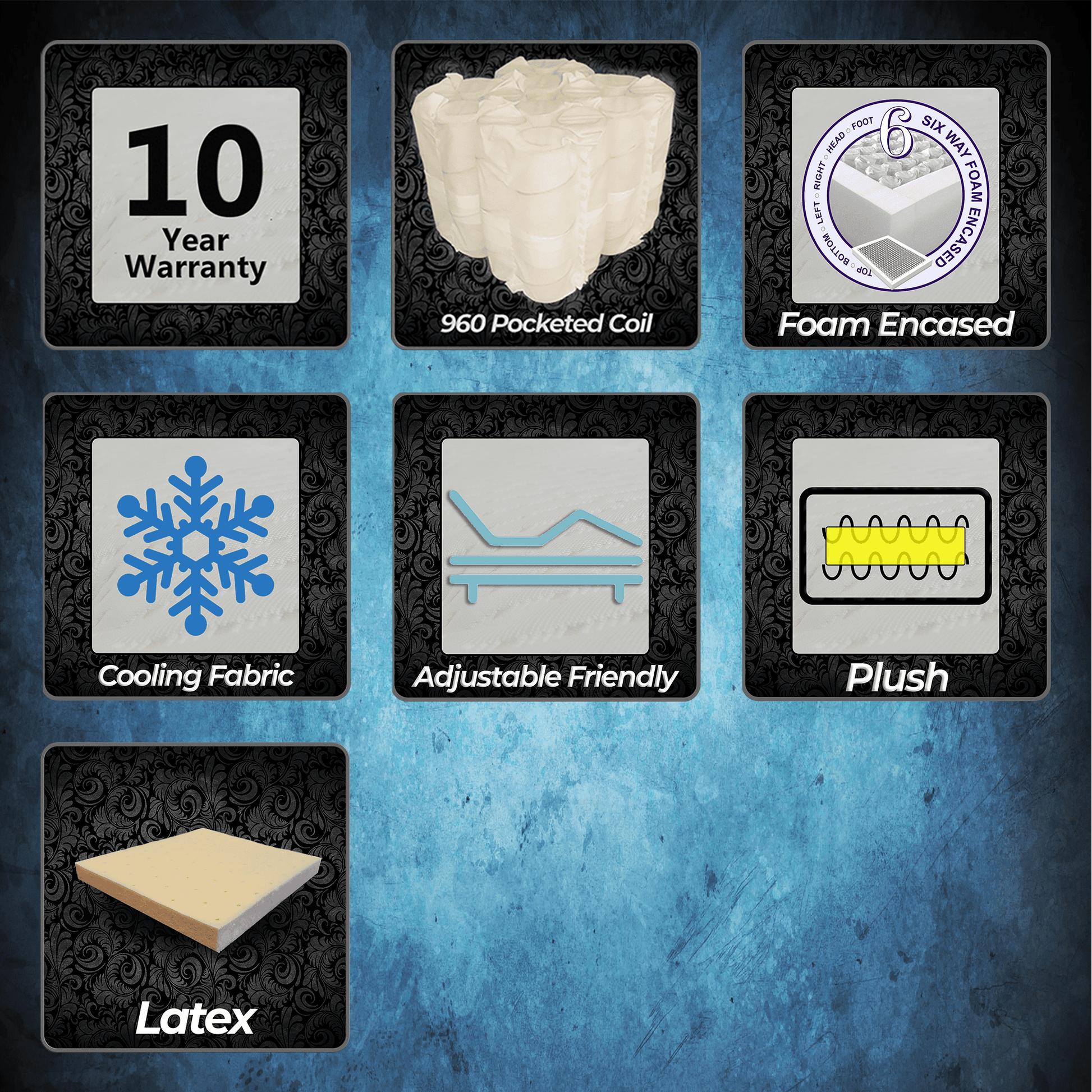 The Pure Comfort Plush has so many features. First, it features our heavy duty 960 pocketed coil unit, which is the most durable pocketed coil unit on the market. This mattress has a medium feel. The Burberry border attracts deserved attention. This bed is foam encased while having our patent pending Cool Silk Fabric cover. Cool Silk Fabric is 40% cooler than traditional fabric. This fabric is cool to the touch and is a noticeable upgrade from traditional fabrics. If you are looking for ALL the bells and whistles, this is the one.