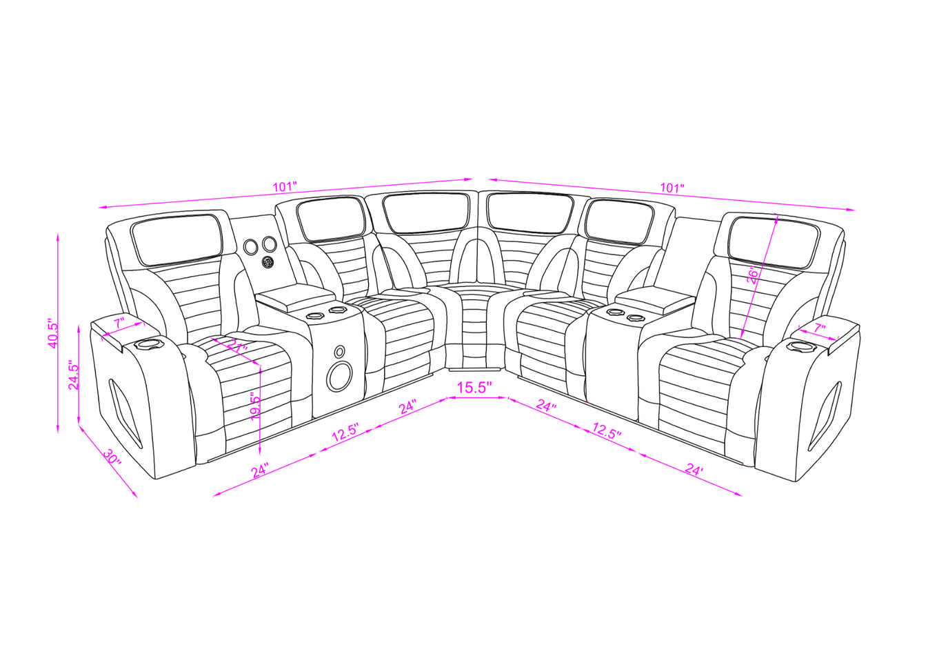 LAF: Power Reclining (1), Storage Console with Cupholders, USB, Bluetooth Speakers, LED, Storage Arm with Cupholders