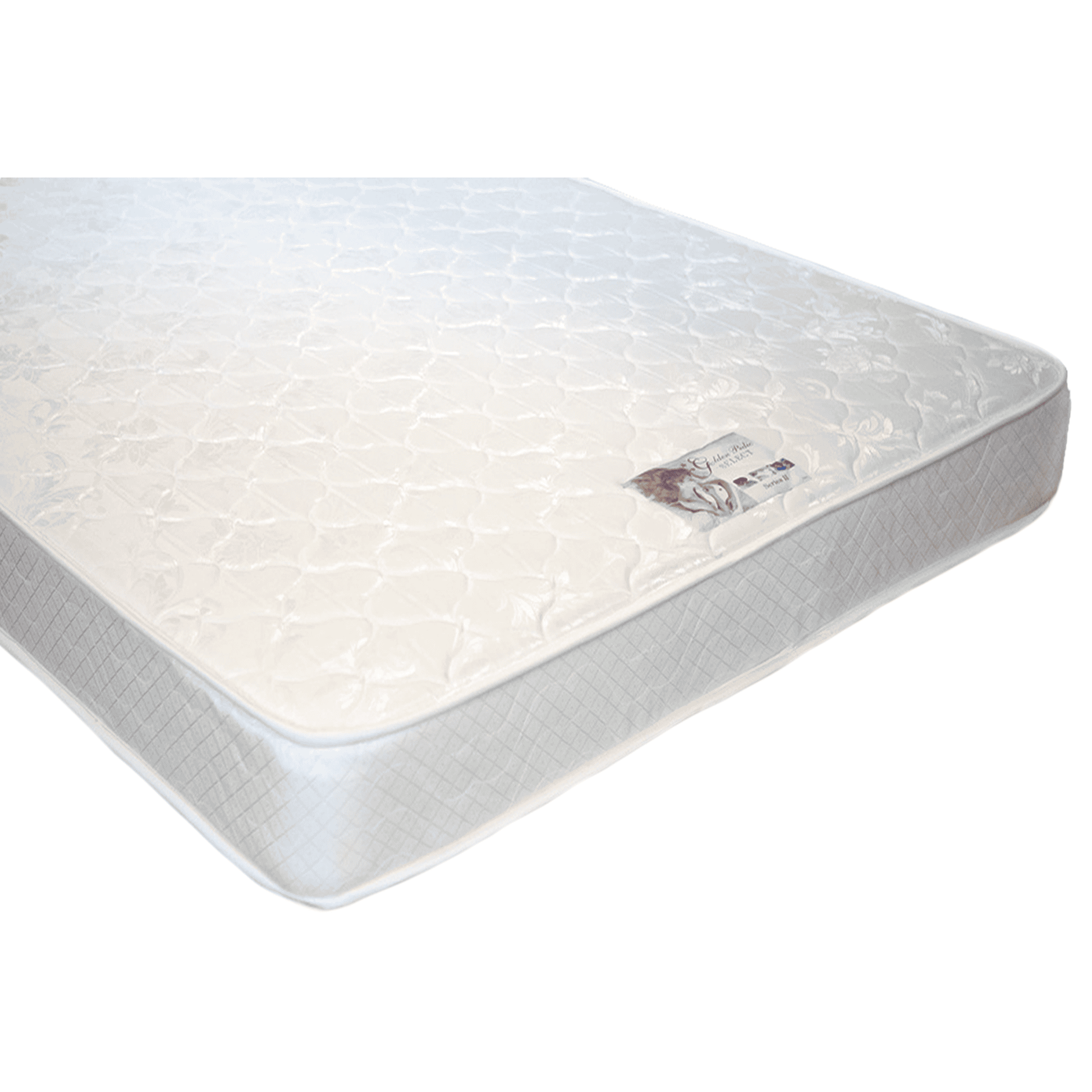 Single-sided 3/8in quilted mattress with white damask (easy to clean) cover.