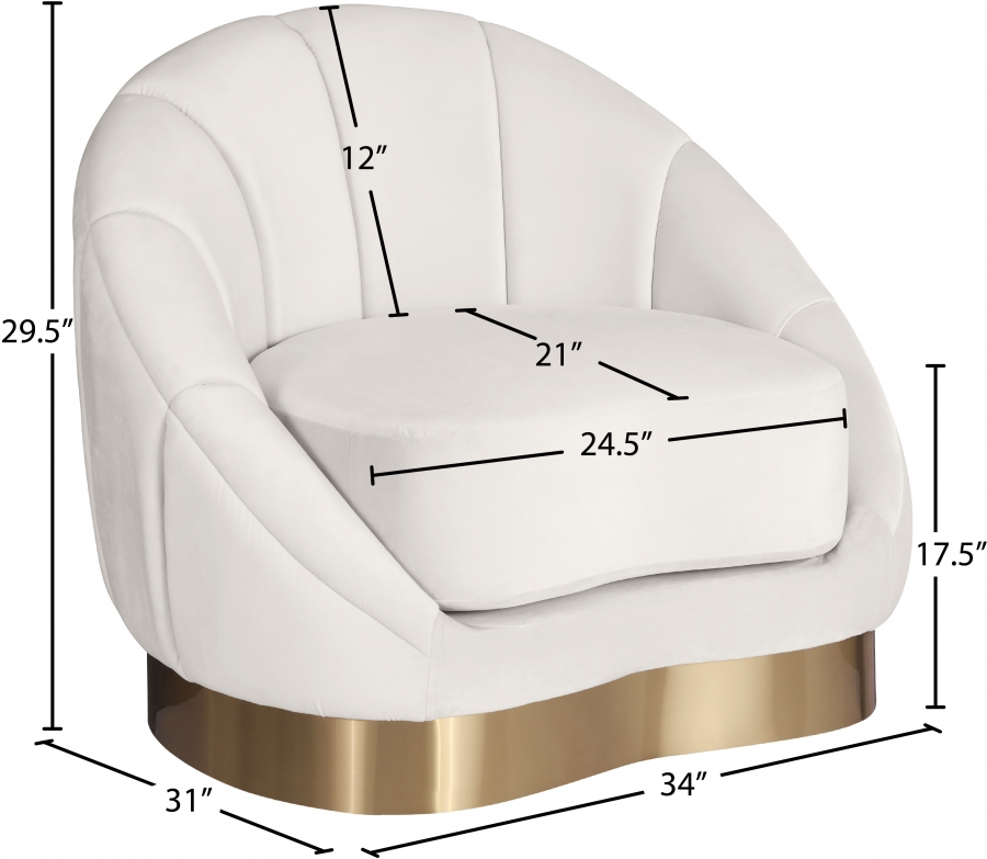 Unwind and rest when you'rere seated on this Shelly velvet chair featuring navy velvet upholstery. This lovely piece is just the thing to inject drama into your space whether used on its own or in combination with other items in the Shelly collection. The unique shell shape immediately commands attention, and the brushed gold stainless steel base cements the base in contemporary panache.