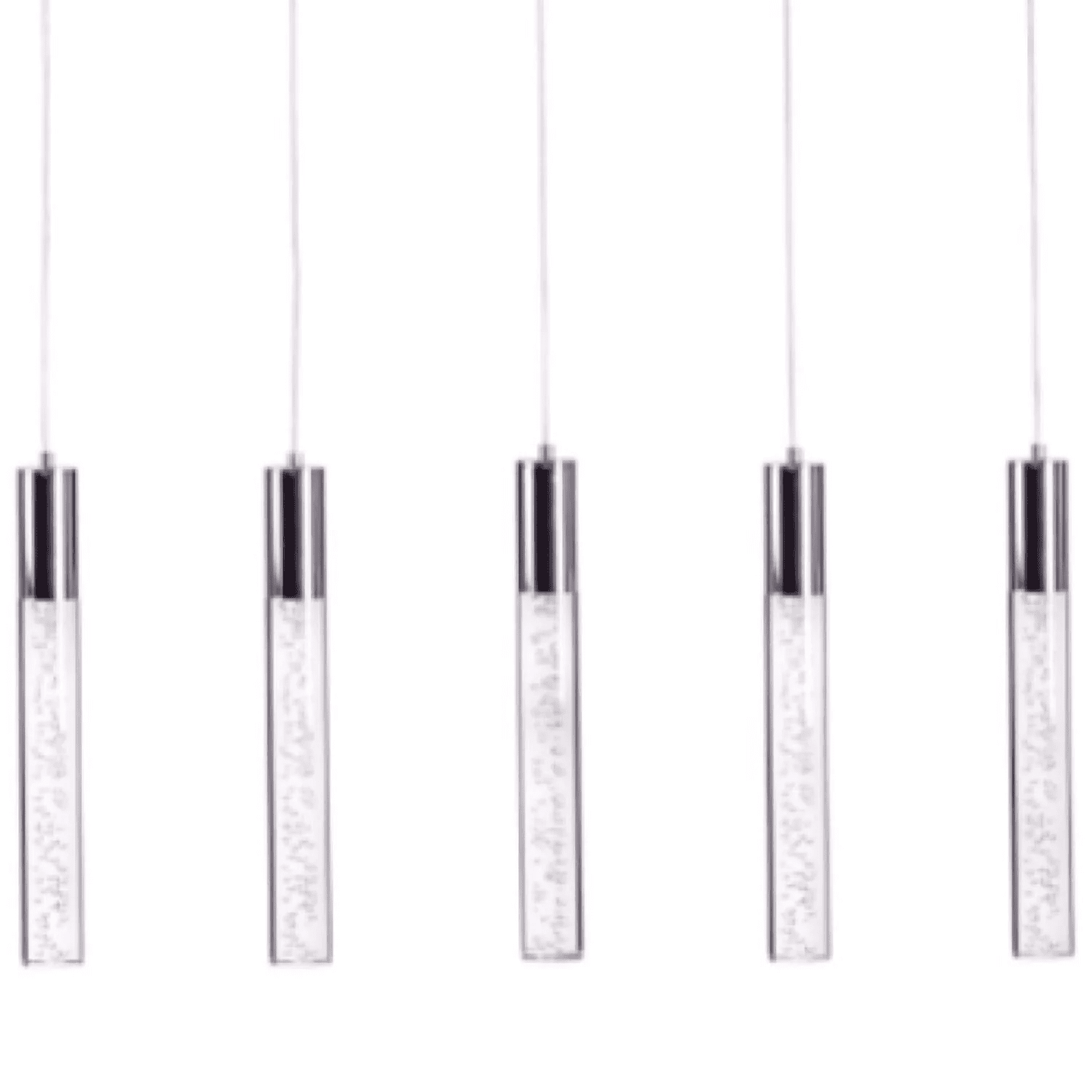 Finesse Decor's sleek and modern five-piece Sparkling Night Cylinder Chandelier is a must-have product! The dazzling acrylic cylinders will illuminate any room with a radiant white light.