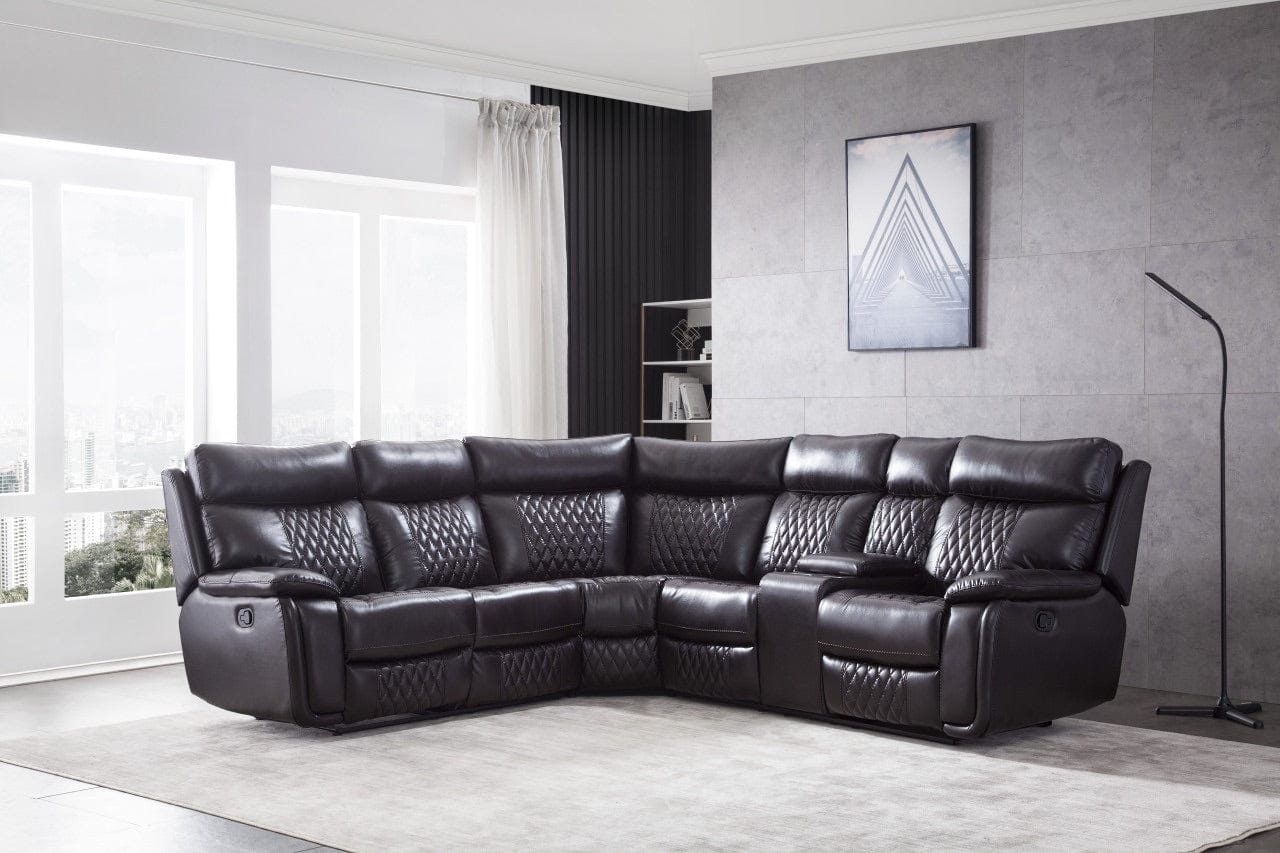 The Torus sectional is a motion set upholstered in leather gel that has the feel of a leather; a breathable 100% polyurethane material.
