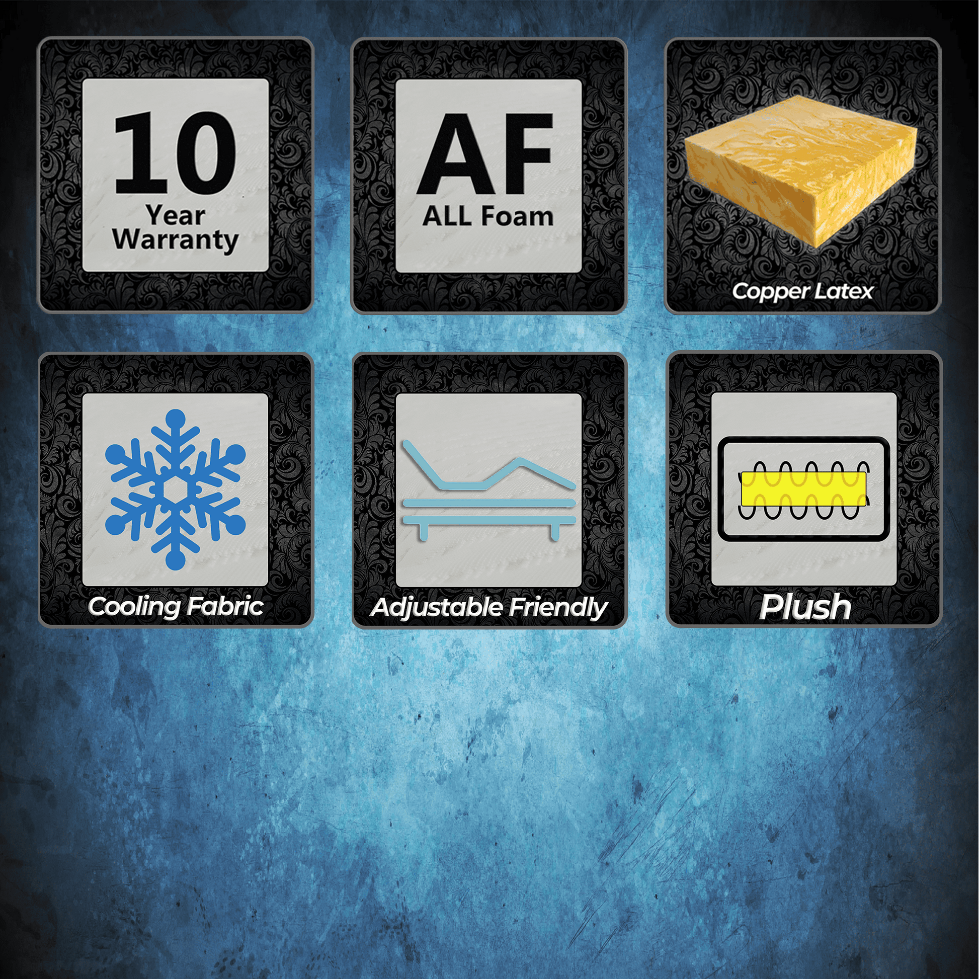The Contour Copper II is a beefier version of the Contour Copper I. It has an additional 2in and is the most sophisticated of the all foam mattress category. It utilizes leading edge technology with copper foam. Copper foam is an upgraded memory foam that wicks heat away while killing 99% of bacteria and fungus. This mattress also has a Cool Stretch cover that is 25% cooler than traditional fabrics. This fabric is cool to the touch and is a noticeable upgrade from traditional fabrics. The Contour Copper II has a soft feel.